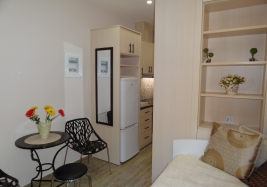 Το διαμέρισμα είναι εξοπλισμένο με εντοιχισμένη κουζίνα, ψυγείο, πλυντήριο ρούχων.